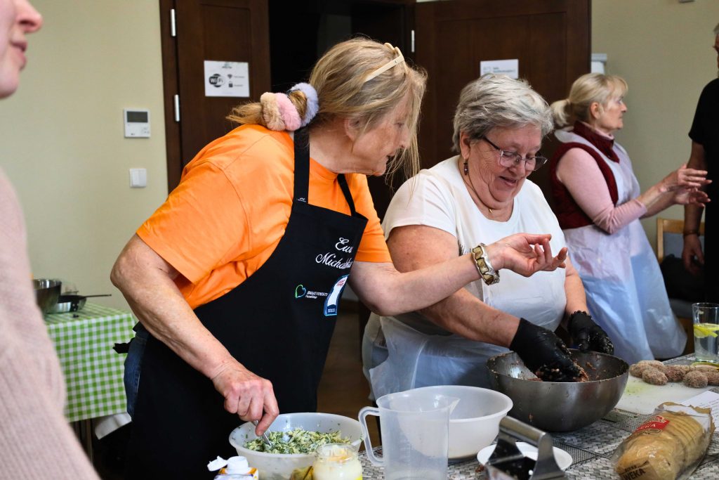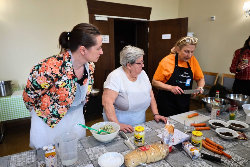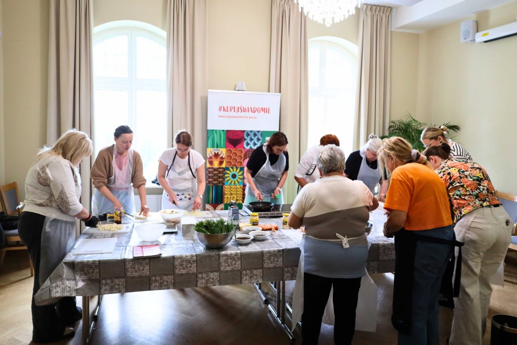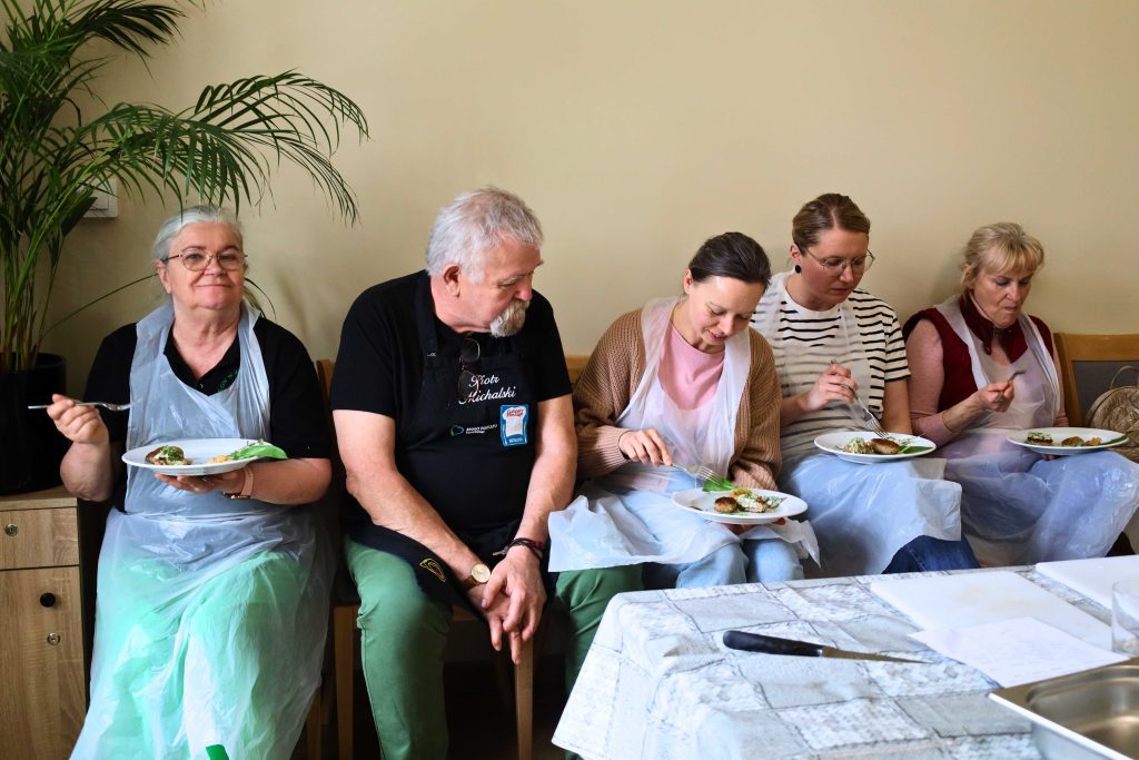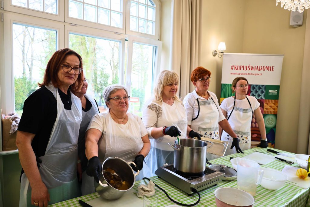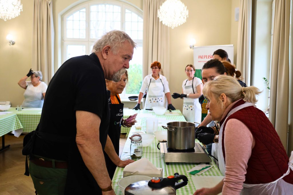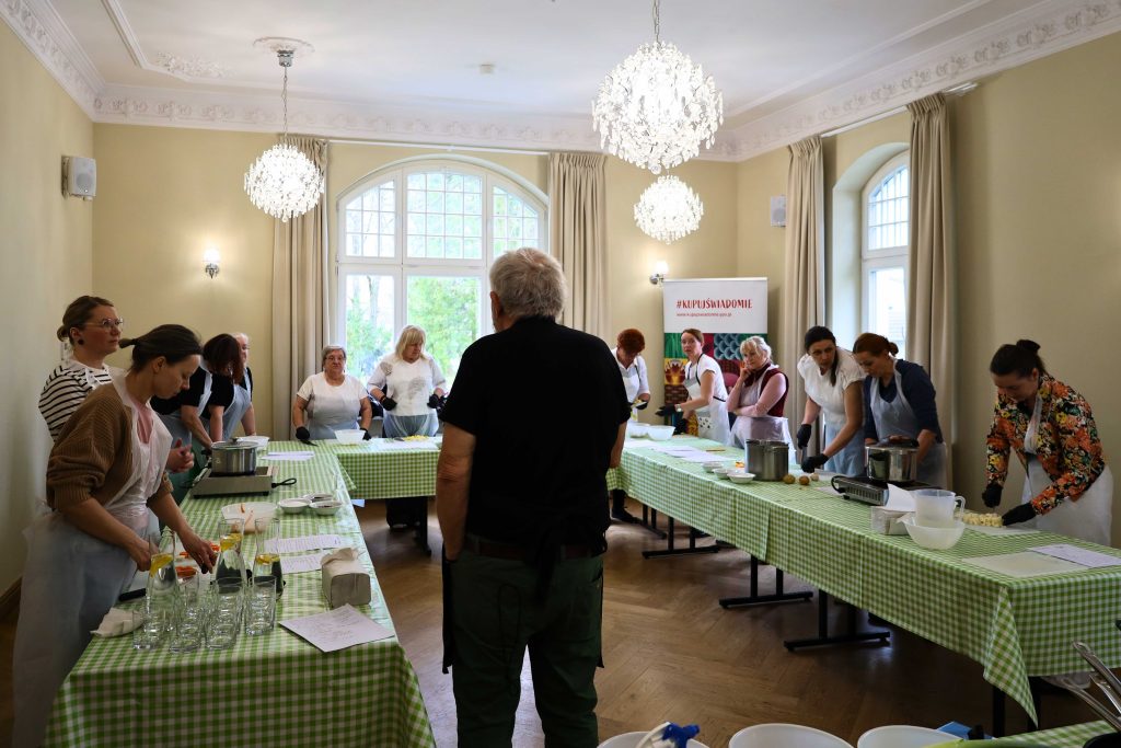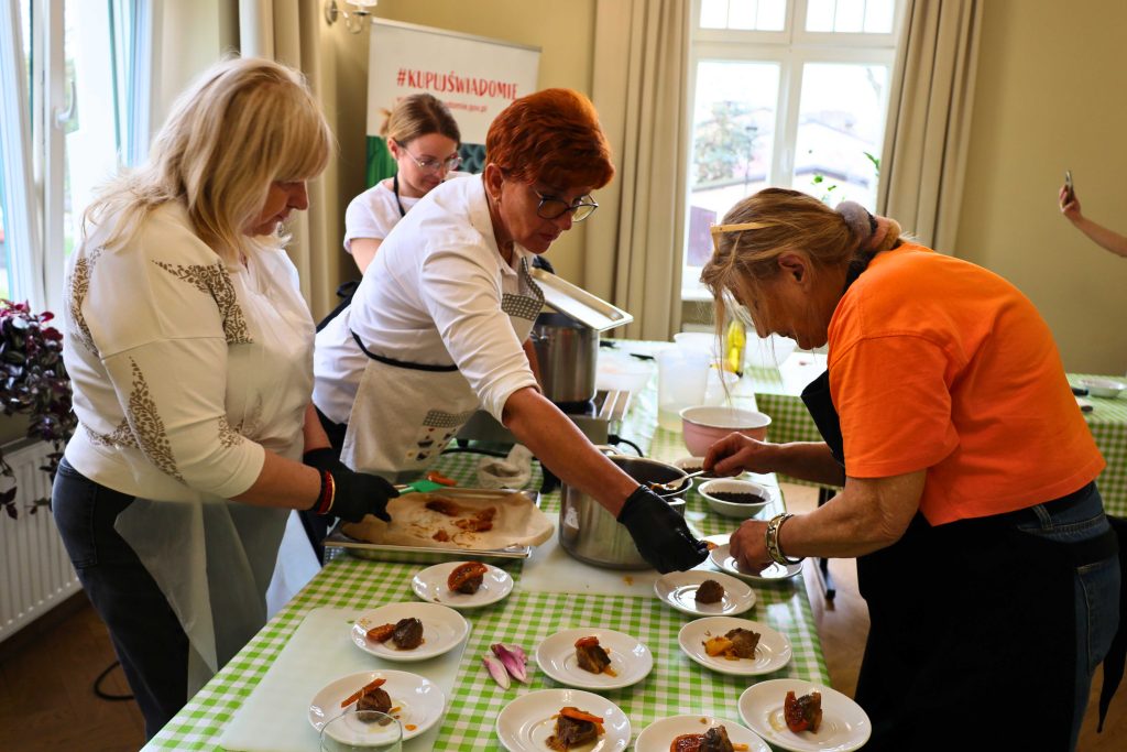 Pod okiem prowadzących – Ewy i Piotra Michalskich, kucharzy osobistych z Puszczykowa – uczestnicy przygotowywali dania ukazujące szerokie możliwości wykorzystania wieprzowiny w kuchni. W programie znalazły się m.in. gulasz irlandzki z karkówki z warzywami, policzki wieprzowe duszone z pomarańczą i winem, kotlety mielone z koperkiem (w różnych wariantach, także z farszem serowym) podane z purée z selera, duszoną cebulą i sałatką z mleczu, a także polędwica wieprzowa z bananem w sosie curry na bazie śmietanki. Warsztaty miały charakter praktyczny – uczestnicy samodzielnie przygotowywali potrawy, zdobywając konkretne umiejętności oraz wymieniając się doświadczeniami. Spotkanie było również przestrzenią do rozmów o jakości produktów, ich pochodzeniu oraz możliwościach wykorzystania tradycyjnych surowców w nowoczesnej kuchni.