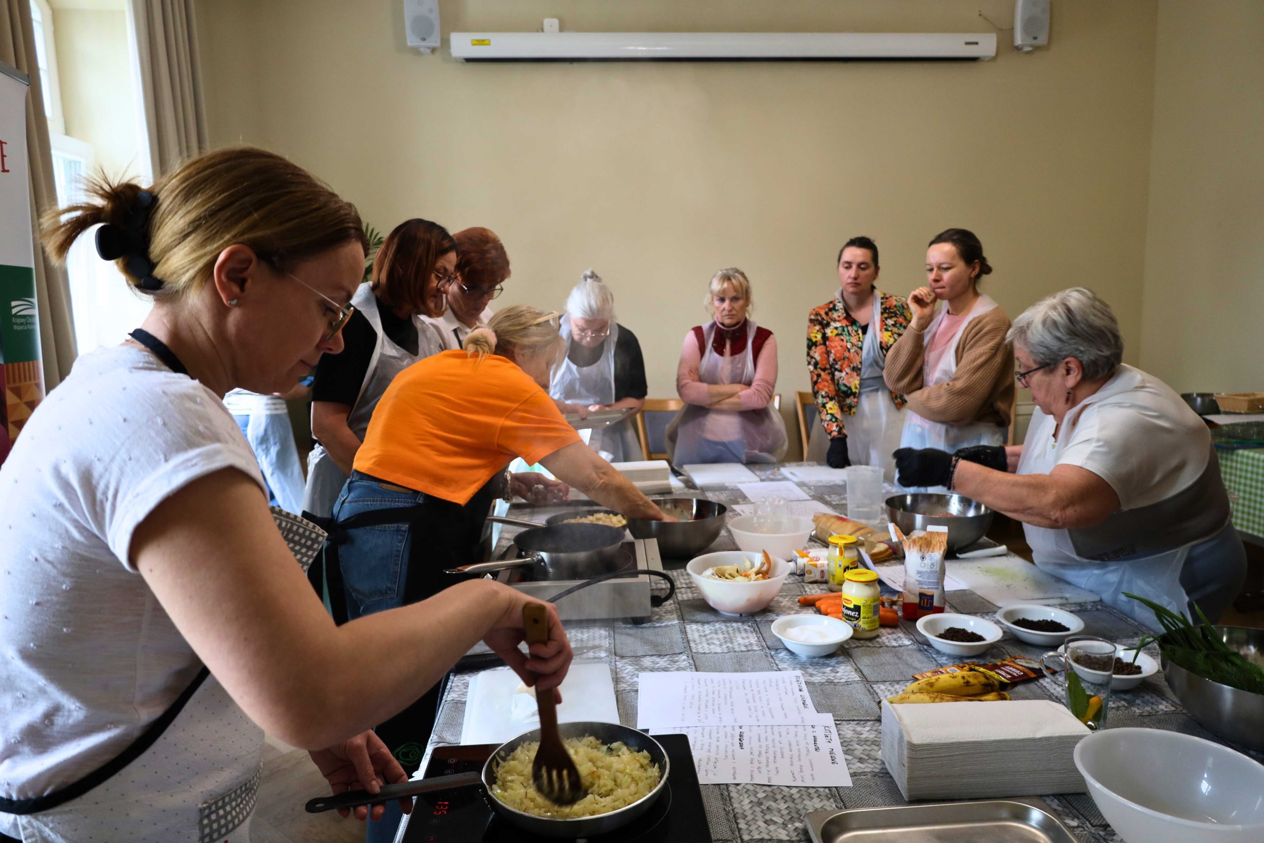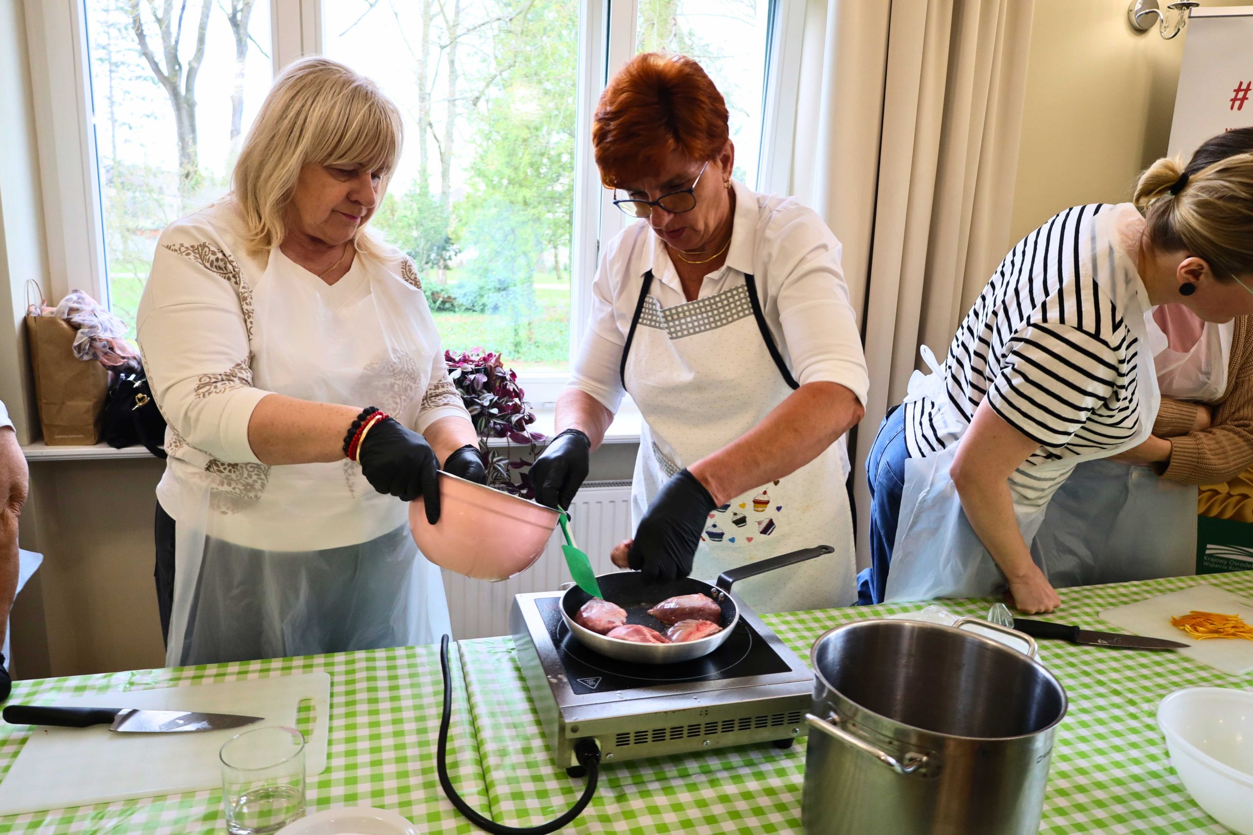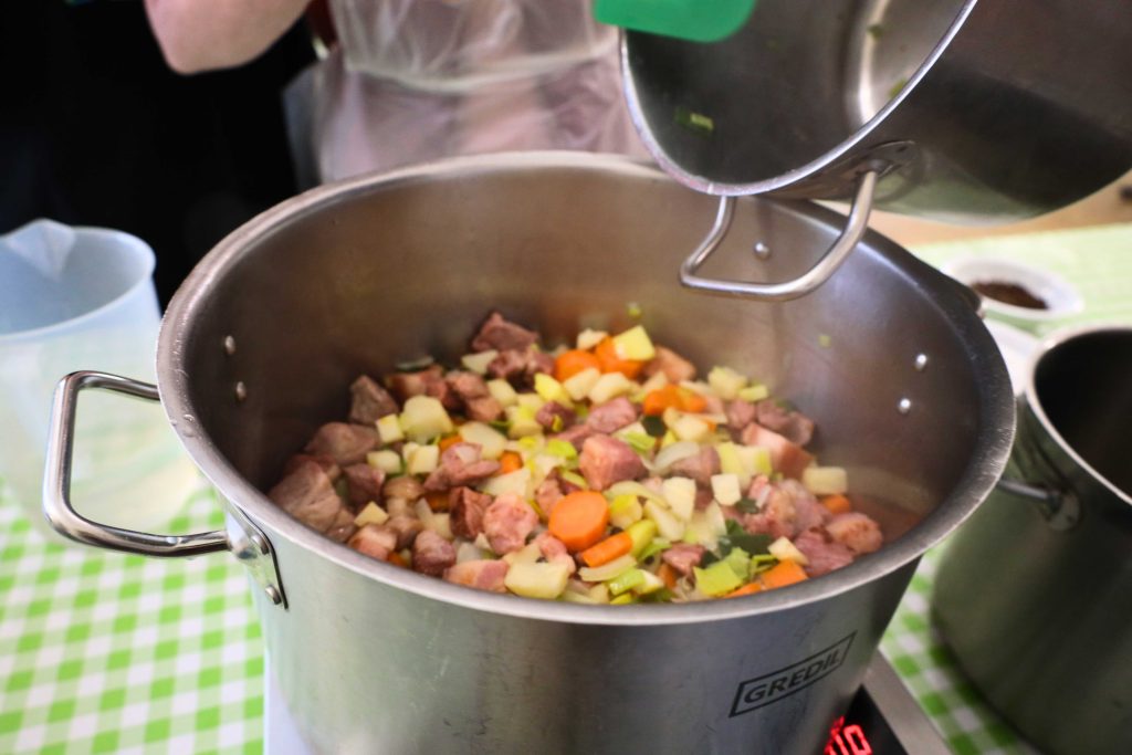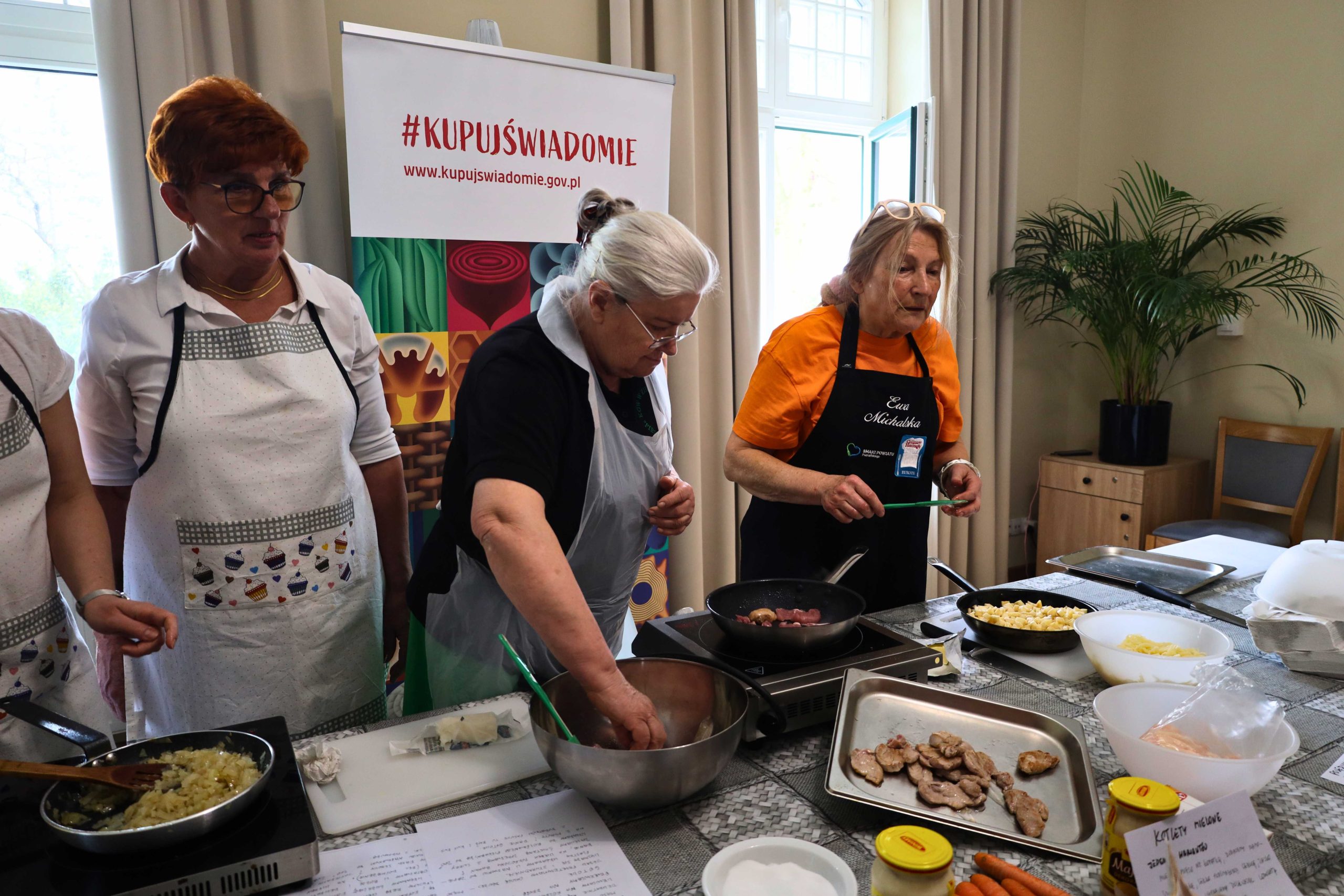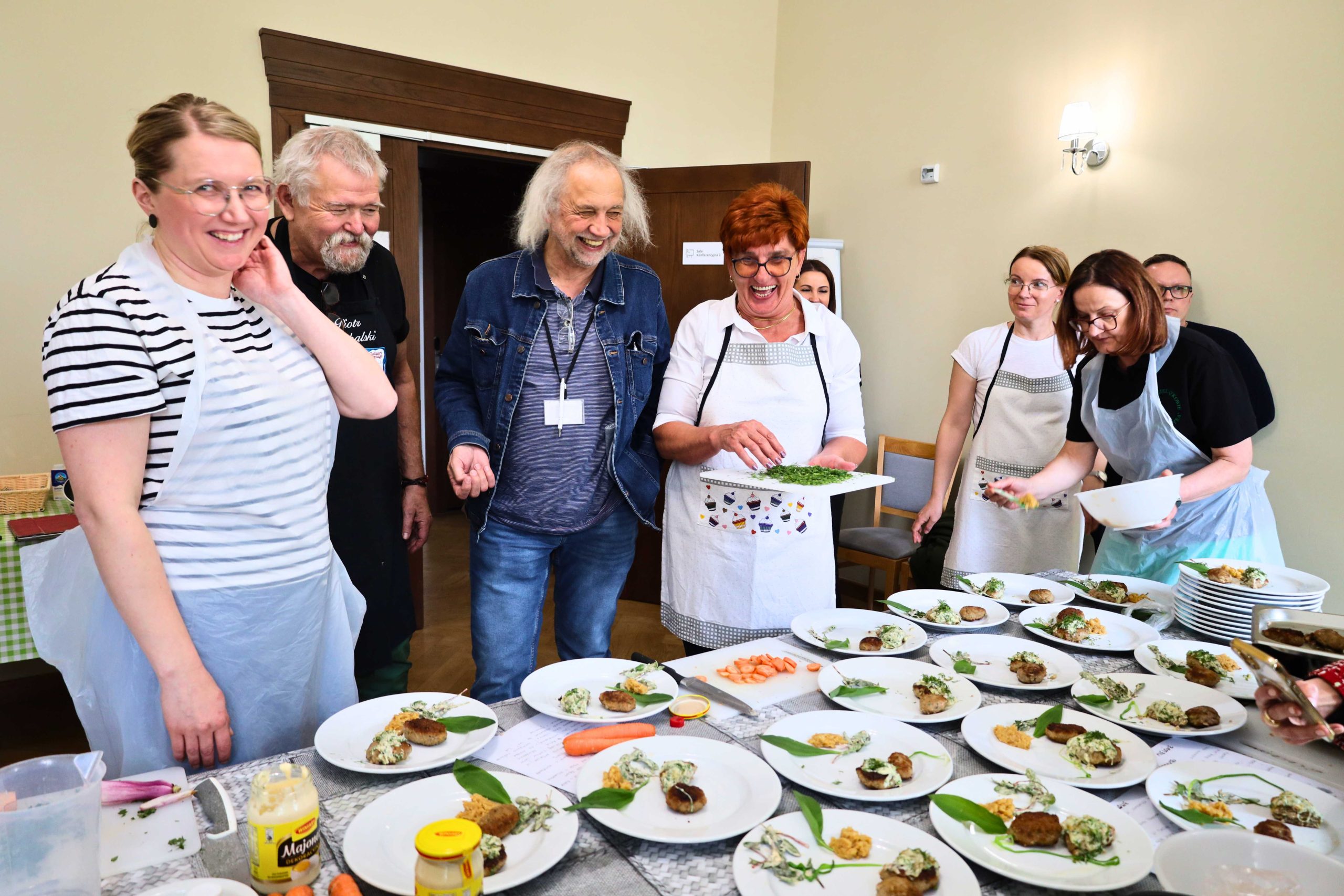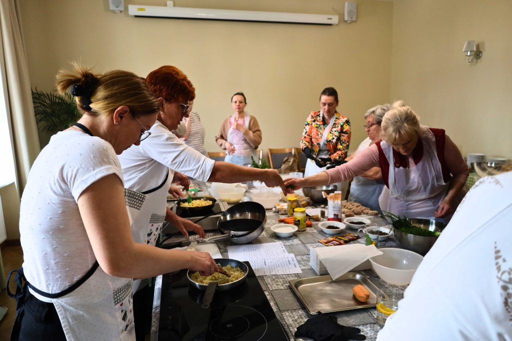 Pod okiem prowadzących – Ewy i Piotra Michalskich, kucharzy osobistych z Puszczykowa – uczestnicy przygotowywali dania ukazujące szerokie możliwości wykorzystania wieprzowiny w kuchni. W programie znalazły się m.in. gulasz irlandzki z karkówki z warzywami, policzki wieprzowe duszone z pomarańczą i winem, kotlety mielone z koperkiem (w różnych wariantach, także z farszem serowym) podane z purée z selera, duszoną cebulą i sałatką z mleczu, a także polędwica wieprzowa z bananem w sosie curry na bazie śmietanki. Warsztaty miały charakter praktyczny – uczestnicy samodzielnie przygotowywali potrawy, zdobywając konkretne umiejętności oraz wymieniając się doświadczeniami. Spotkanie było również przestrzenią do rozmów o jakości produktów, ich pochodzeniu oraz możliwościach wykorzystania tradycyjnych surowców w nowoczesnej kuchni.