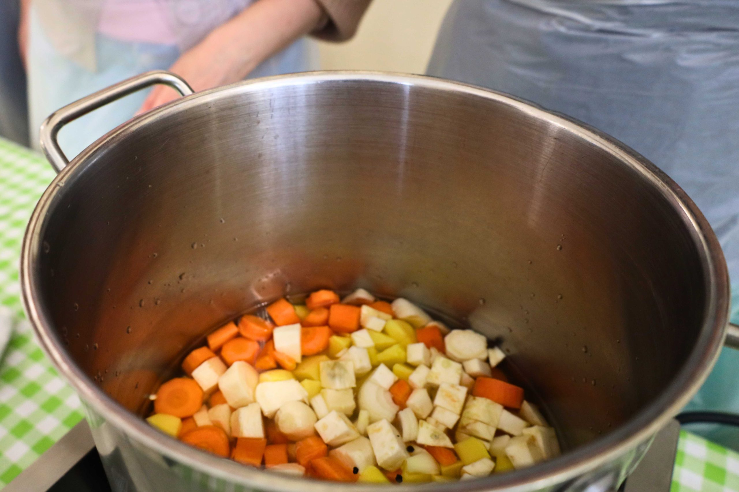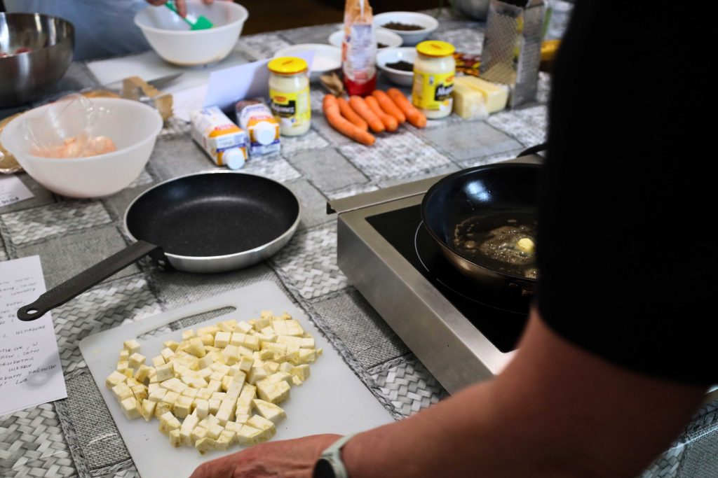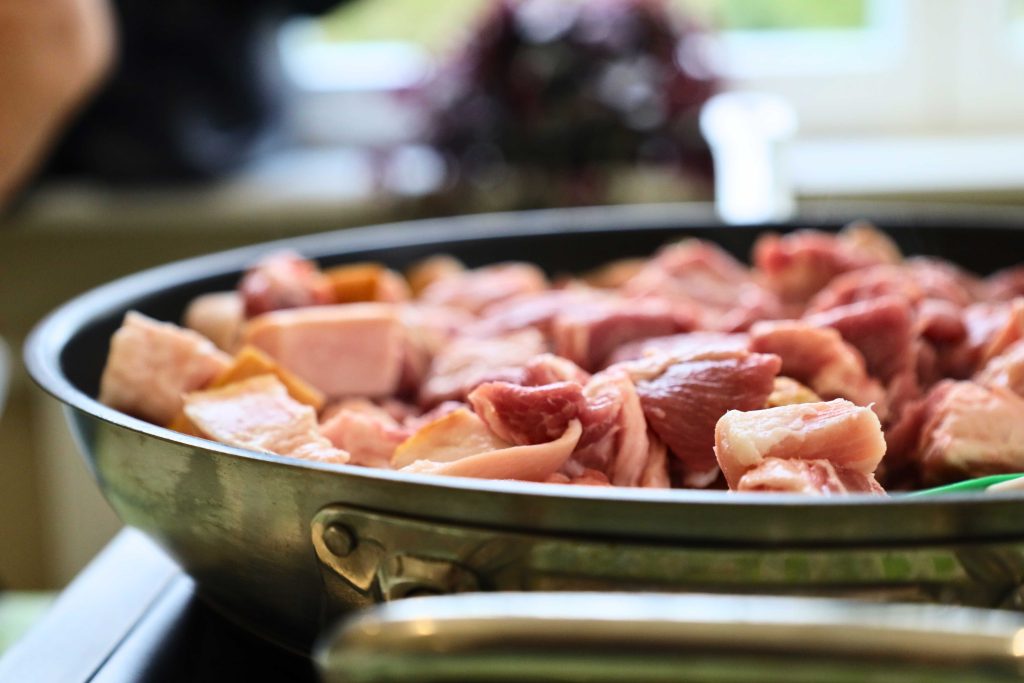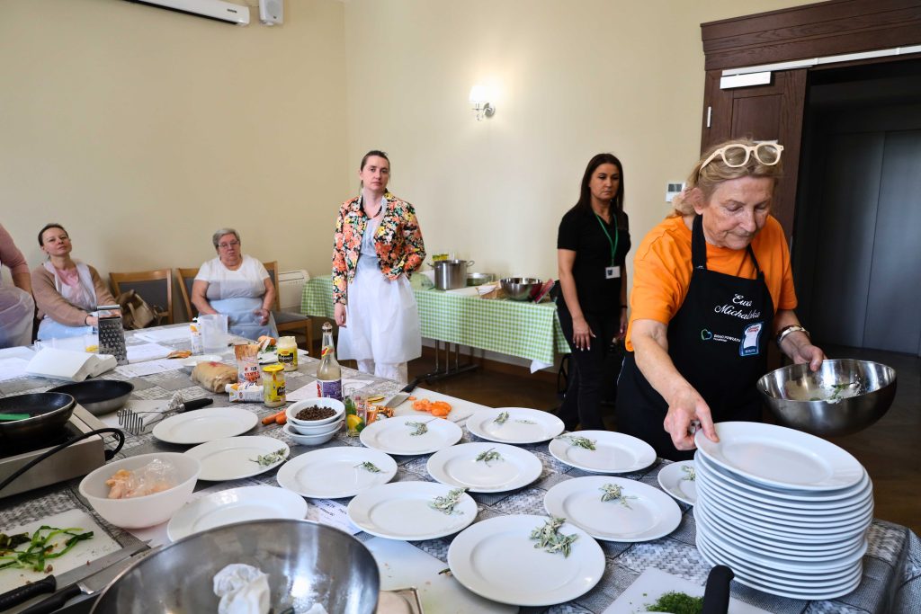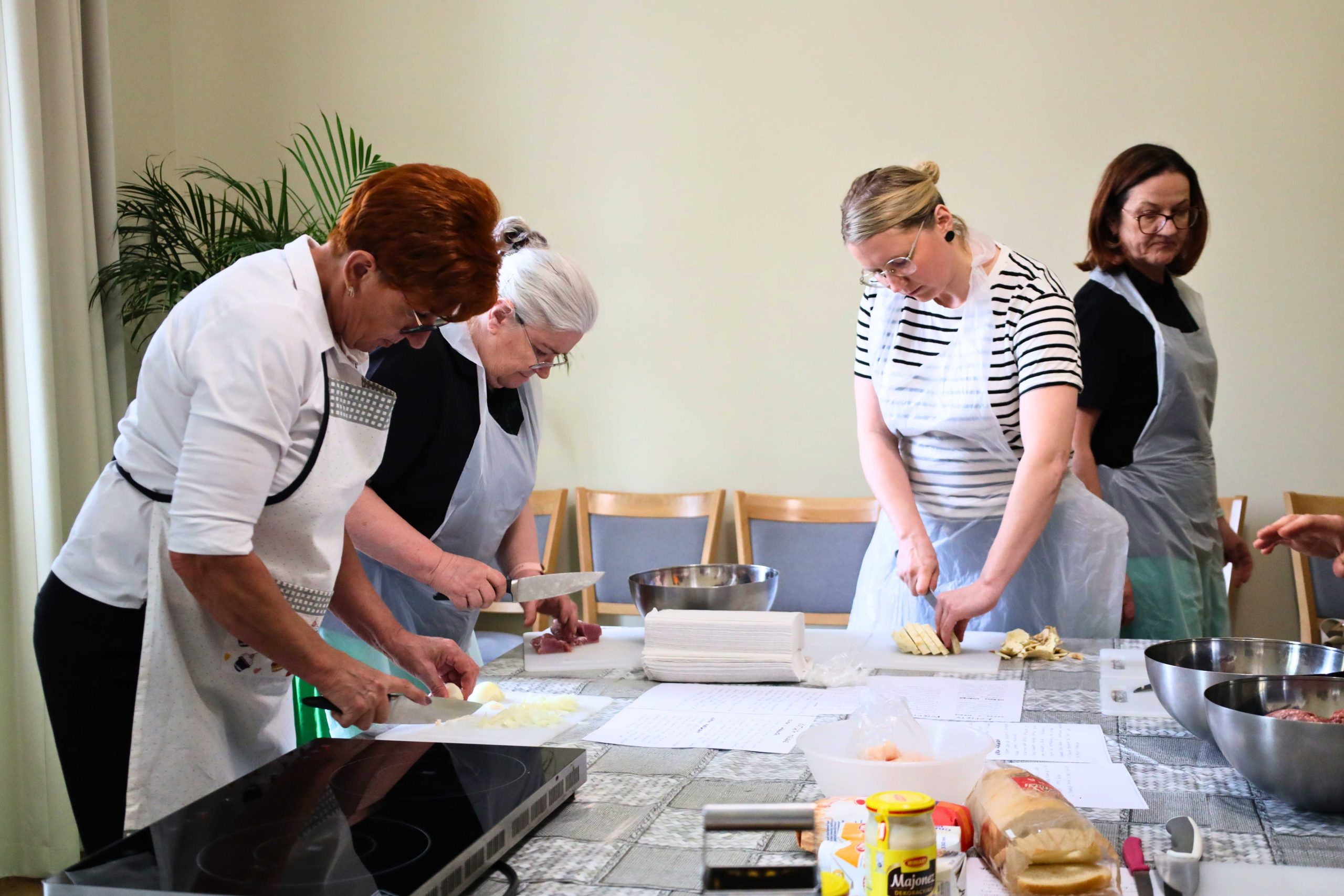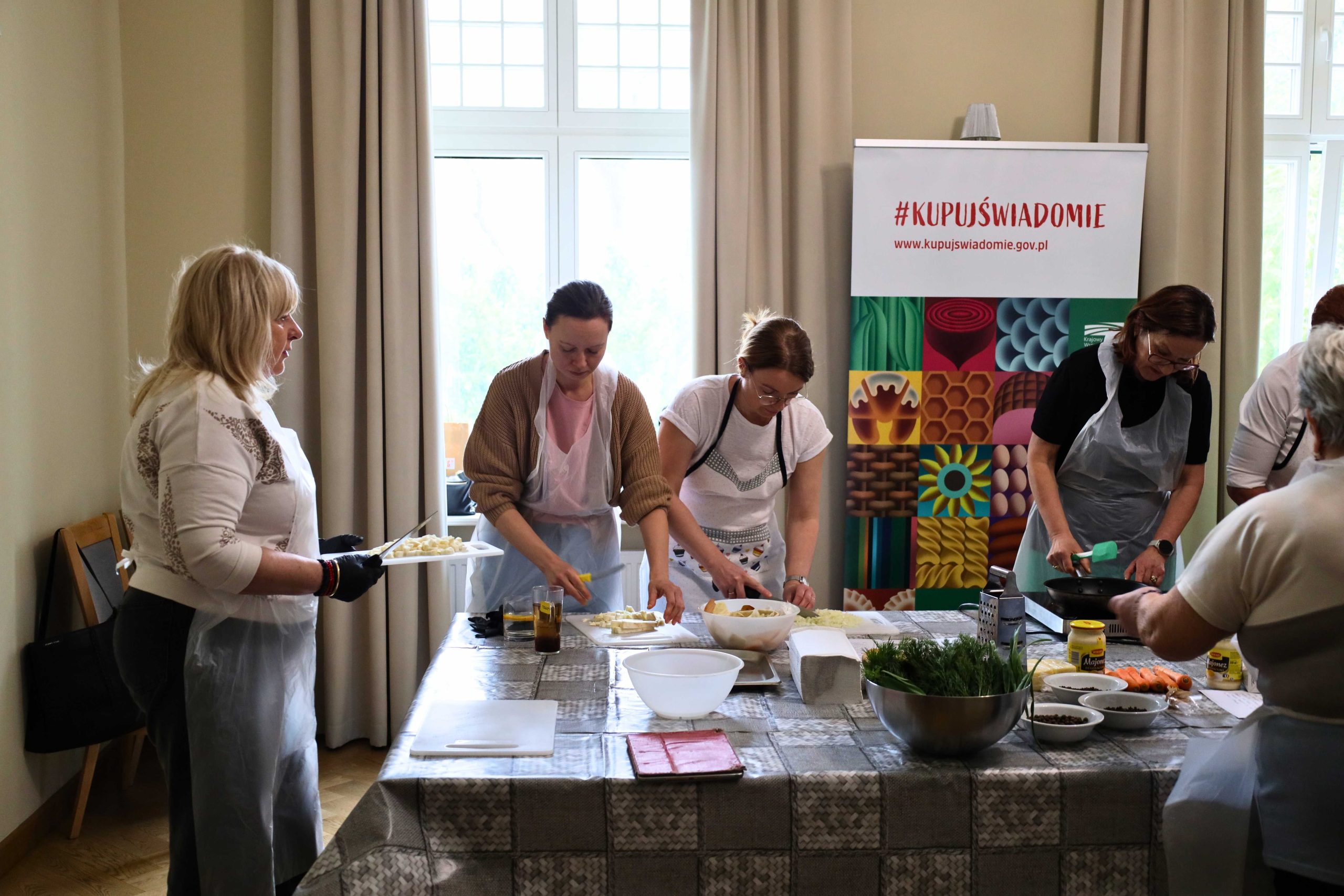 Pod okiem prowadzących – Ewy i Piotra Michalskich, kucharzy osobistych z Puszczykowa – uczestnicy przygotowywali dania ukazujące szerokie możliwości wykorzystania wieprzowiny w kuchni. W programie znalazły się m.in. gulasz irlandzki z karkówki z warzywami, policzki wieprzowe duszone z pomarańczą i winem, kotlety mielone z koperkiem (w różnych wariantach, także z farszem serowym) podane z purée z selera, duszoną cebulą i sałatką z mleczu, a także polędwica wieprzowa z bananem w sosie curry na bazie śmietanki. Warsztaty miały charakter praktyczny – uczestnicy samodzielnie przygotowywali potrawy, zdobywając konkretne umiejętności oraz wymieniając się doświadczeniami. Spotkanie było również przestrzenią do rozmów o jakości produktów, ich pochodzeniu oraz możliwościach wykorzystania tradycyjnych surowców w nowoczesnej kuchni.