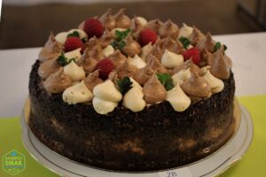 Sernik królewski z bezą, orzechami i konfiturą pomarańczową na czekoladowym spodzie