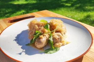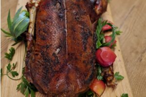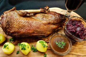 Ze stada co luzym łażą po kieretynach chwytumy gynś. Sumsiod ubije, bo jo nie moge. Dobrum chabere obcinumy, solymy i odstowiumy w mlostku w cimne skrytke na późni. A do gora bierymy środki, pobcinane gnotki, skórki, gordyczke, skrzydołka i troche tłustygu. Wszystko razym gotujymy z zielunym, dodajymy liście bobkowe i majeranke. Jak zminknum, wyciungumy na […]