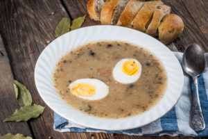 Ciasto miodowe Rozpuszczamy miód, dodajemy masło i cukier puder. Odstawiamy do przestygnięcia Do miski wsypujemy mąkę wymieszaną z sodą. Dodajemy jajka, żółtko i przestudzona masę miodową oraz kwaśną śmietanę. Ciasto powinno być zwarte. Dzielimy na 3 części, rozwałkowujemy, pieczemy w blaszce prostokątnej w temp. 200 stopni aż zbrązowieje. Tak samo pieczemy dwa pozostałe blaty ciasta. […]