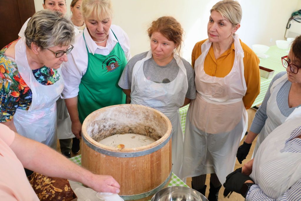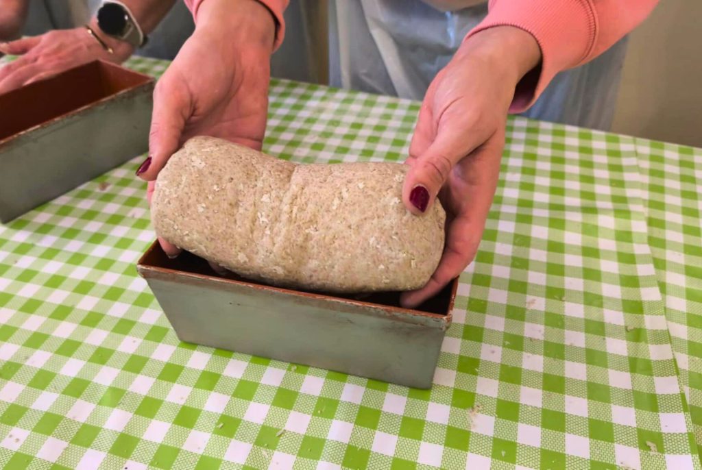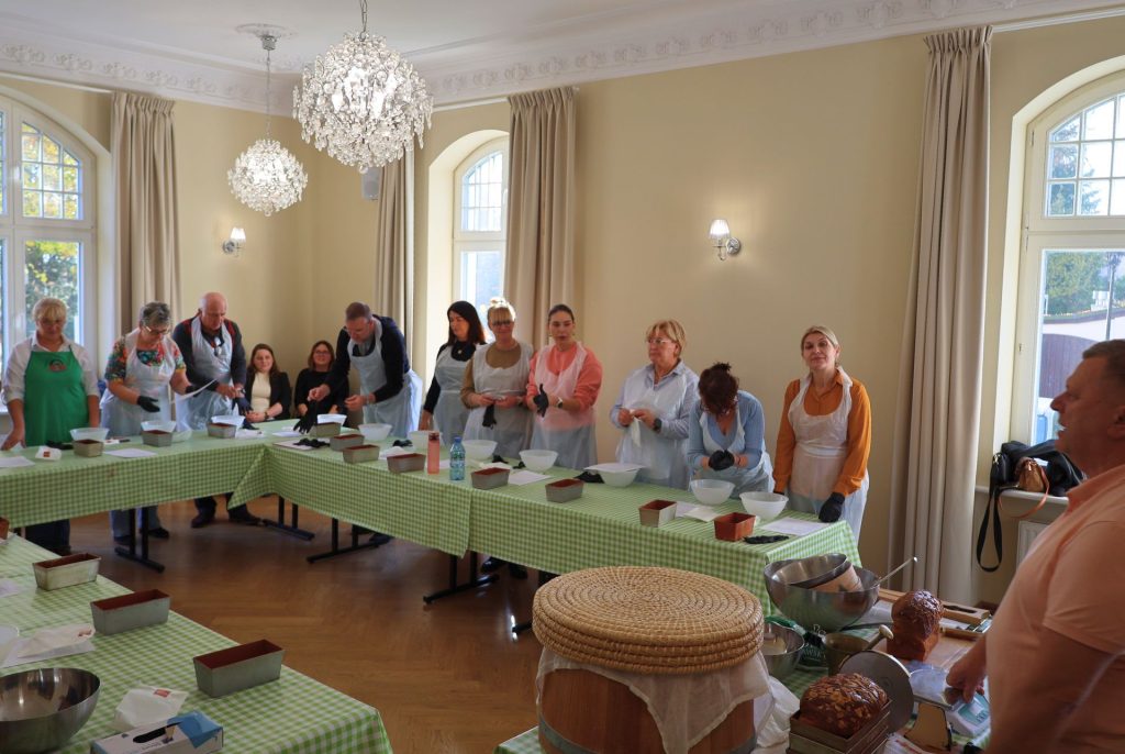 Podczas zajęć 5.11.2025 uczestnicy dowiedzieli się, jak powstaje kwas do wypieku chleba, jakie właściwości kryją różne rodzaje mąki oraz jaką rolę w procesie odgrywają drożdże i sól. Praktycznym efektem tych nauk był własnoręcznie przygotowany chleb żytni pytlowy, zwany też sitkowym – wypiek, który wymaga cierpliwości, precyzji i serca.